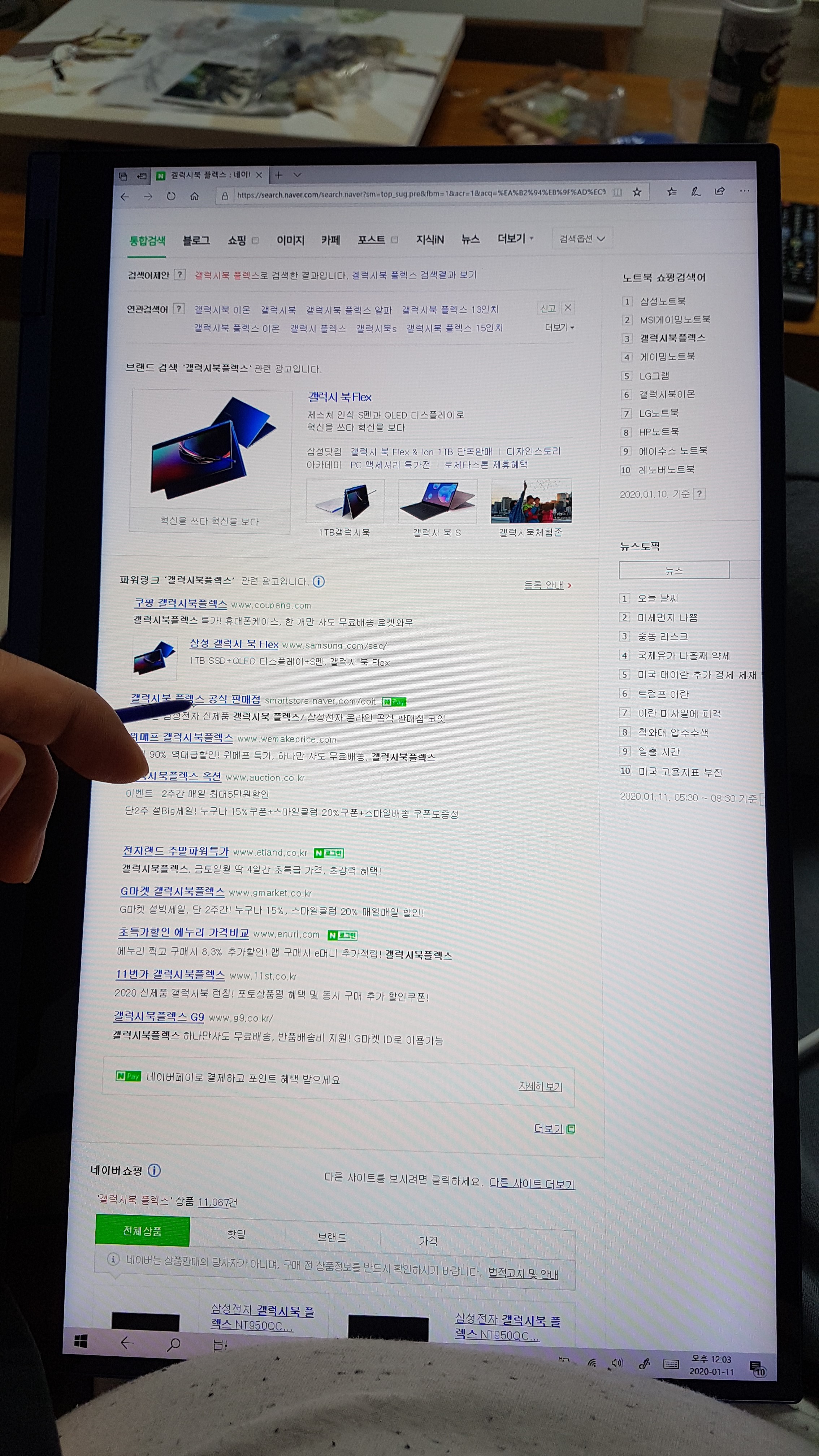 리뷰 작성하는 지금이 갤럭시북 플렉스를 구입해서 사용한 첫날인데, 지금 리뷰를 작성하는 이유는 1주일 내에 리뷰를 작성하면, 5만 원 문화상품권을 준다고 해입니다.^^; 구입과 동시에 갤럭시 북 플렉스로 리뷰를 작성하는 거라, 자세한 리뷰는 하지 못 하지만, 일단 첫 느낌은 생각보다 소파에서 태블릿 활용도가 높을 것 같습니다. ^^; 안드로이드나 애플 앱처럼 태블릿 전용 앱들이 있는 것은 아니기 때문에, 일반적으로 태블릿보다는 사용 편의성이 덜 하지만, 윈도우가 태블릿을 위한 보조 기능들이 어느 정도 잘 되어있어서, 사용하는데 큰 불편은 없을 것 같네요. 지금 당장 제일 마음에 드는 건 A형으로 접어서 동영상 시청하거나, 태블릿 모드로 세로로 긴 기사나 글 읽을 때 편한 거가 제일 마음에 드네요.^^